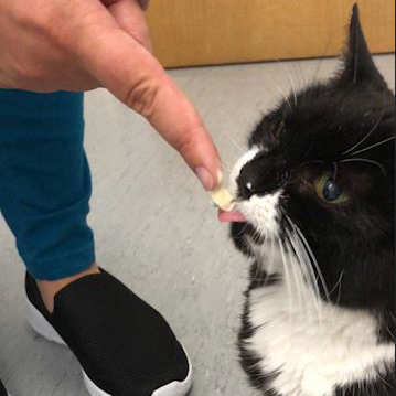 - Follow with another treat or food to ensure it has been properly swallowed